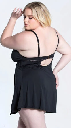 Slip into something more comfortable like this flirty babydoll set featuring sheer lace cups with strappy detailing, adjustable spaghetti straps, a back hook closure, an open underbust panel, a sheer mesh and lace skirt, and a matching panty with a cheeky cut back.
